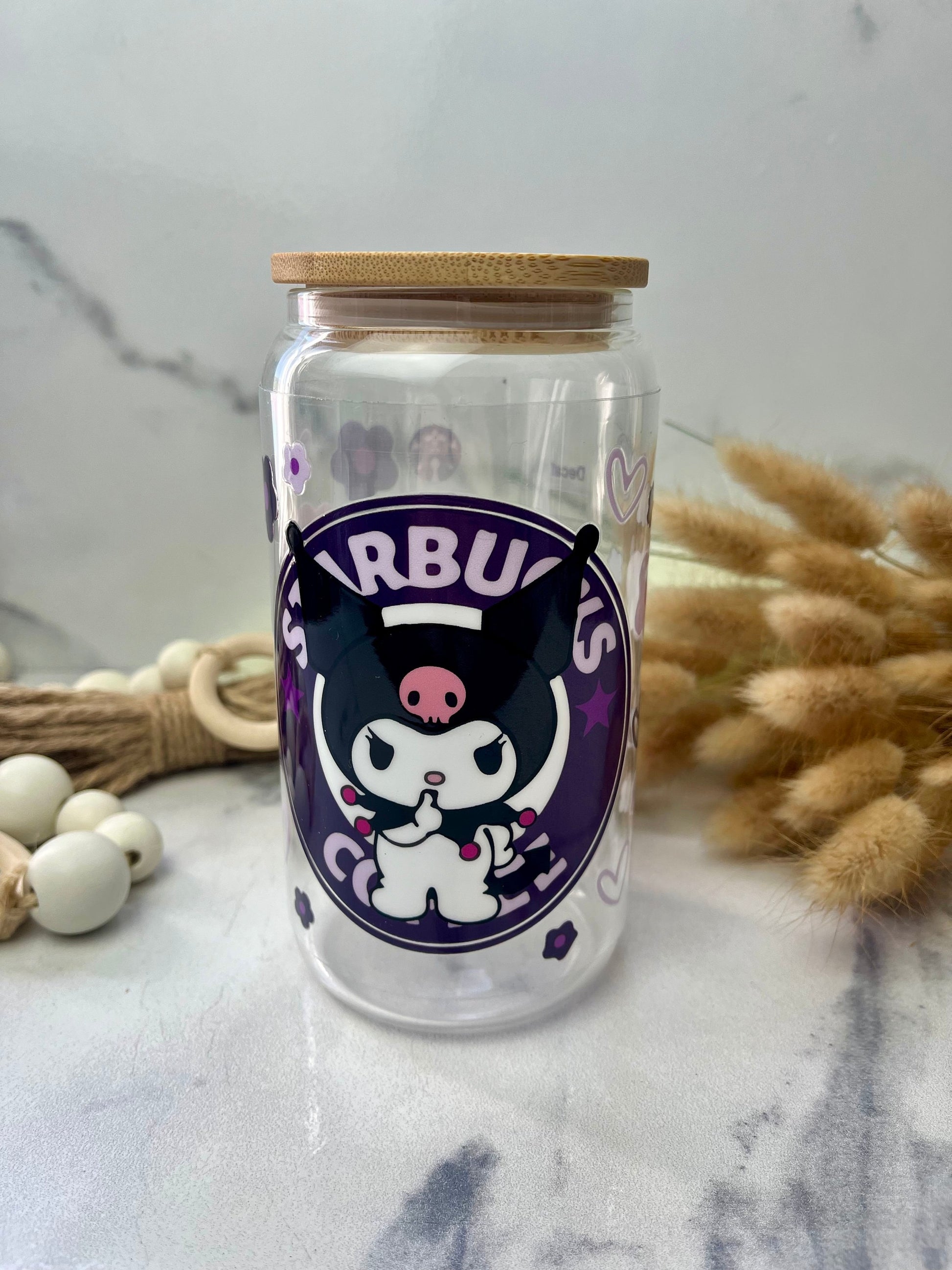 16oz glass cup tumbler comes with one plastic straight straw and bamboo lid. With a High quality printed decal.Bamboo lid with silicone to prevent spilling Fits in cup holders. We recommend to hand wash cups. Will not fade or remove the design in water. Each tumbler is securely wrapped in bubble wrap and box for shipping protection.