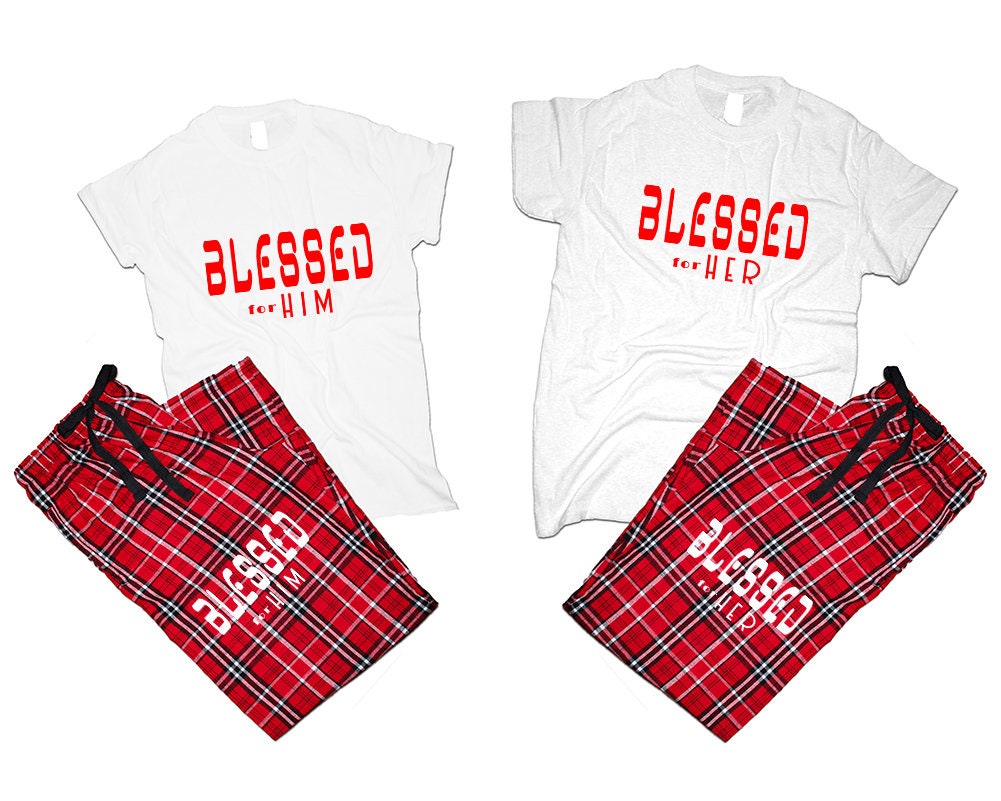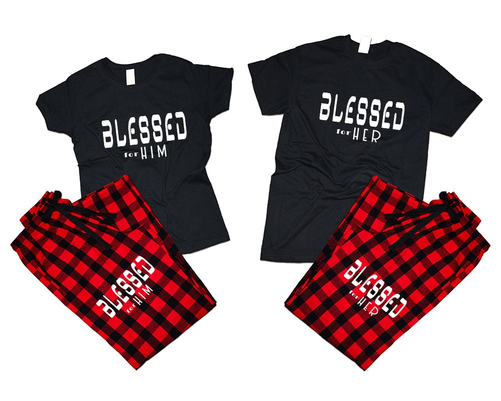 blessed for her blessed for him matching t shirts pajamas pants set woman man Couple outfits Christmas gift 4 items sold separately