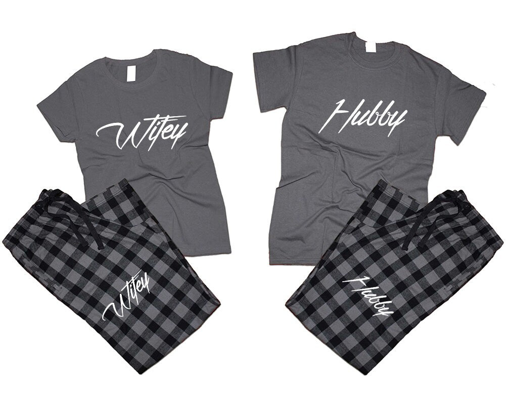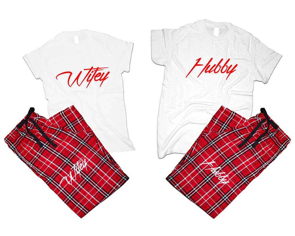 Christmas gift Hubby Wifey Couple t shirts with pants flannel sets pajamas King queen woman man Couple outfits gift 4 items sold separately