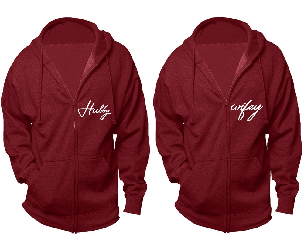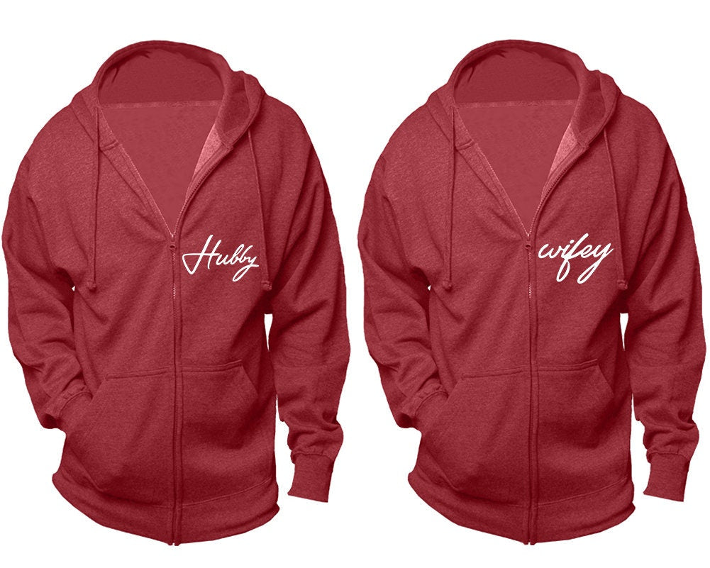 Christmas Hubby Wifey zip up hoodies, matching zip up jackets, Christmas outfits sold separately