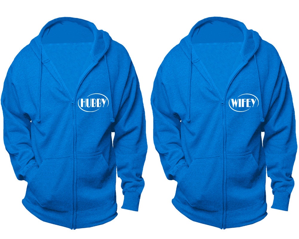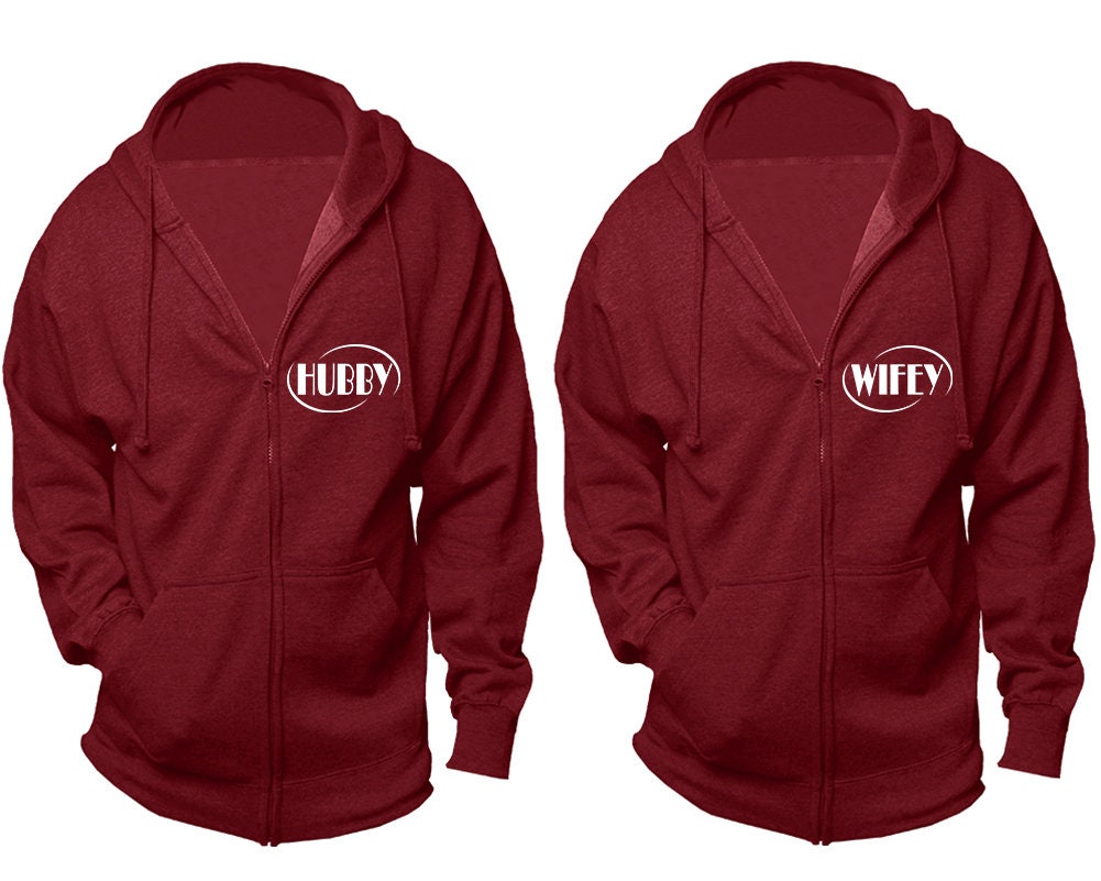 Couple hoodies, zip up jackets, Hubby Wifey matching zipper jackets, Christmas outfits sold separately