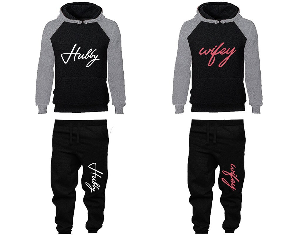Couple Hubby Wifey Hoodie Jogger Pants Clothing, Women Joggers Men Joggers King Queen Hoodies Matching 4 items Sold Separately