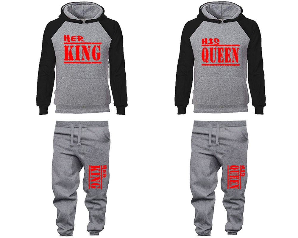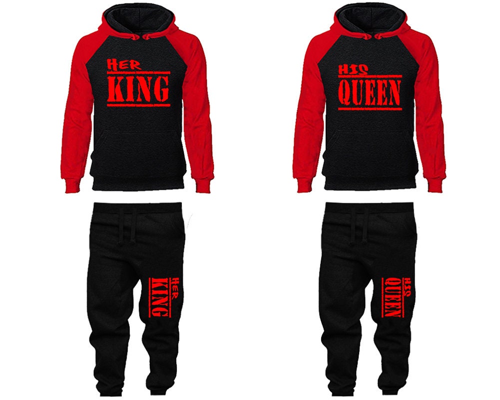 Couple matching tracksuit pants Hoodie King Queen, red designs Women Joggers Men Joggers King Queen Hoodies Matching 4 items Sold Separately