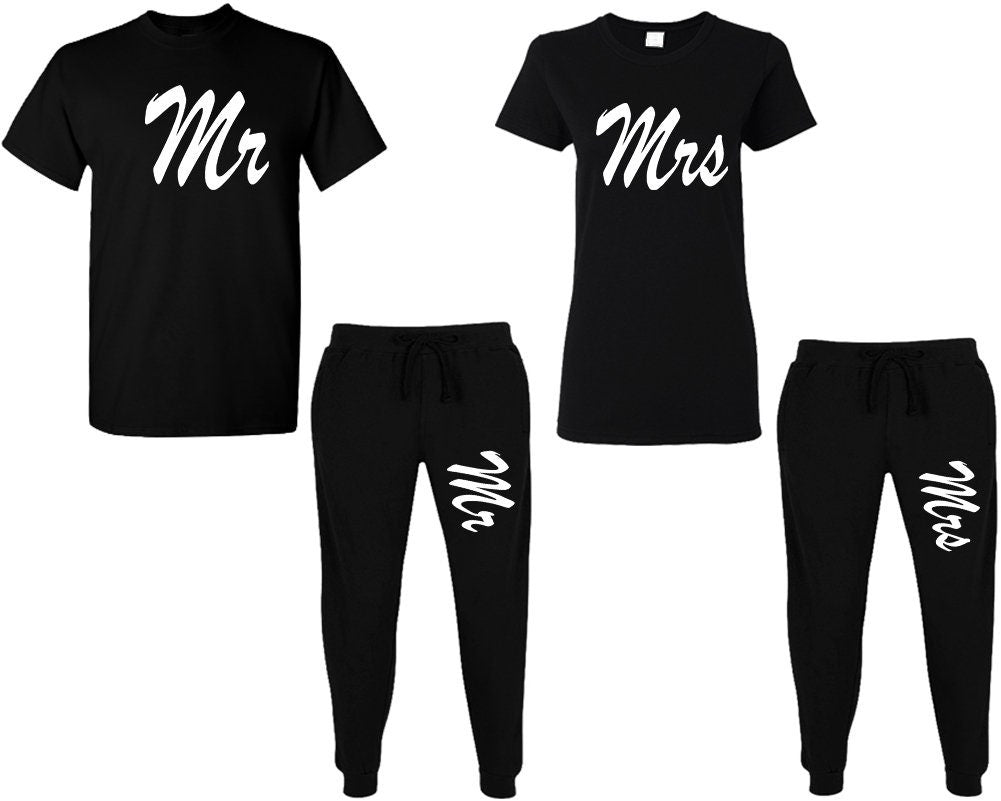 Couple Mr Mrs t shirt sweatpants matching outfits, jogger pants married outfits tracksuit for couples 4 items sold separately
