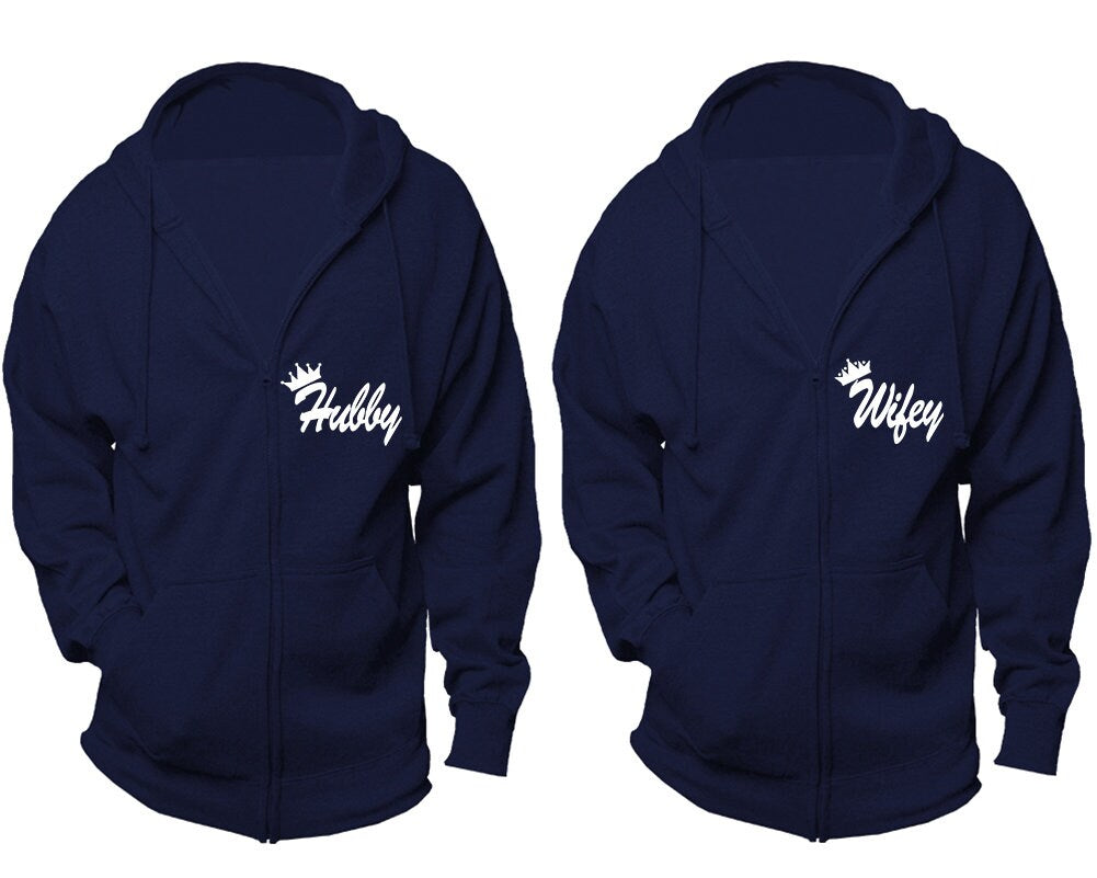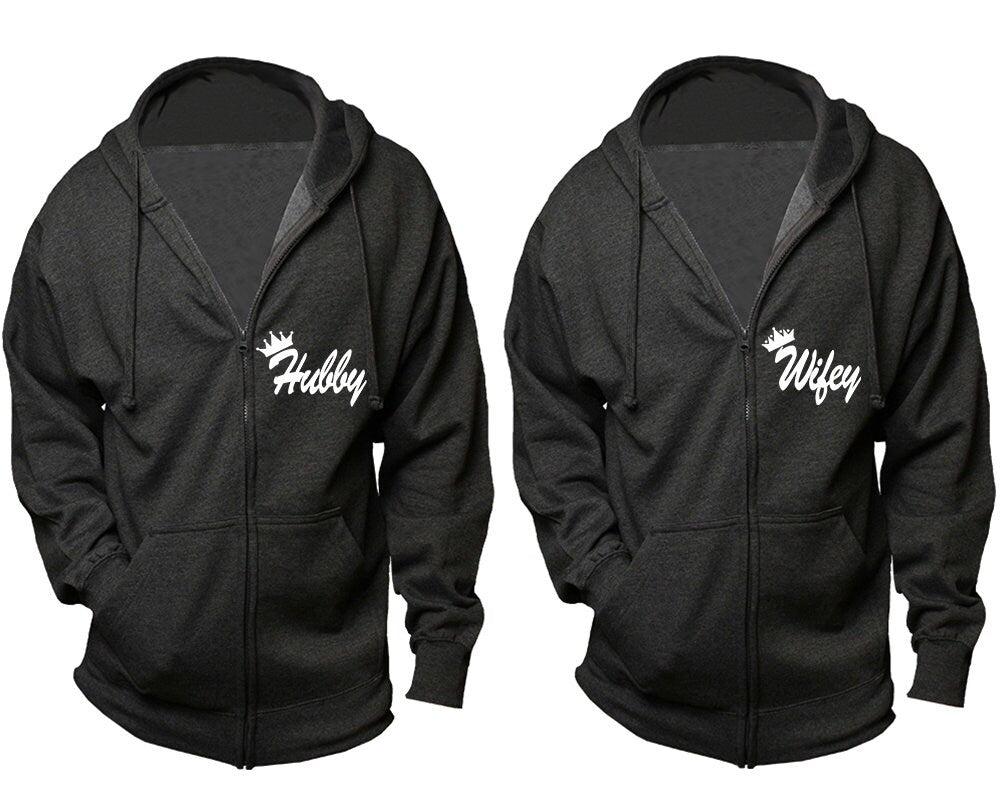 Crown Couple hoodies, zip up jackets, Hubby Wifey matching zipper jackets, Christmas outfits sold separately
