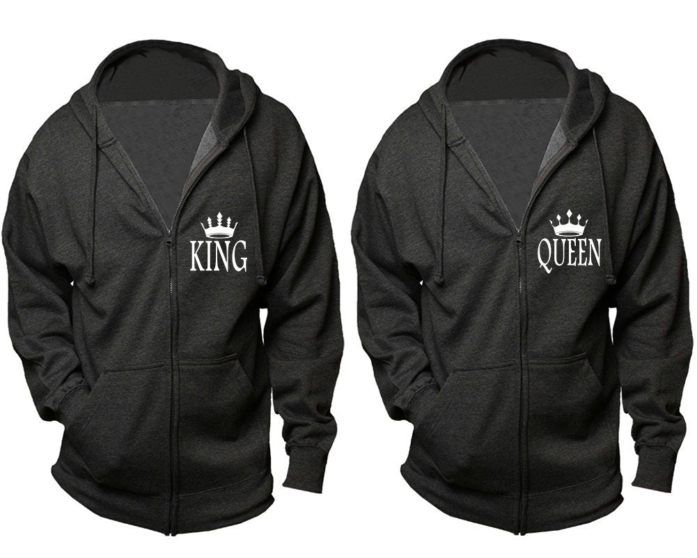 Crown King queen matching couple outfits, zip up hoodies, christmas gift, Xmas party sold separately