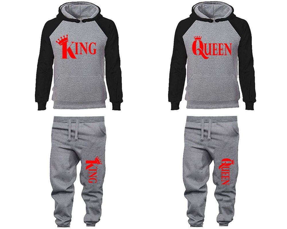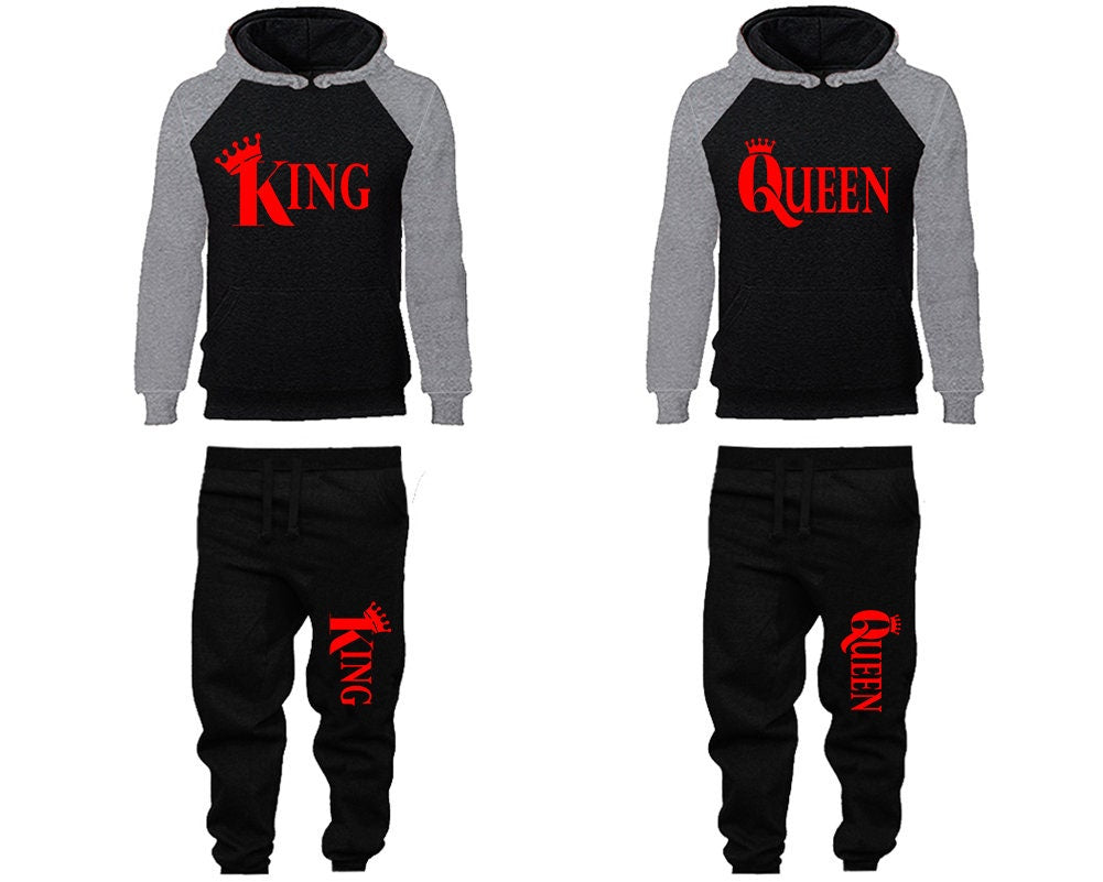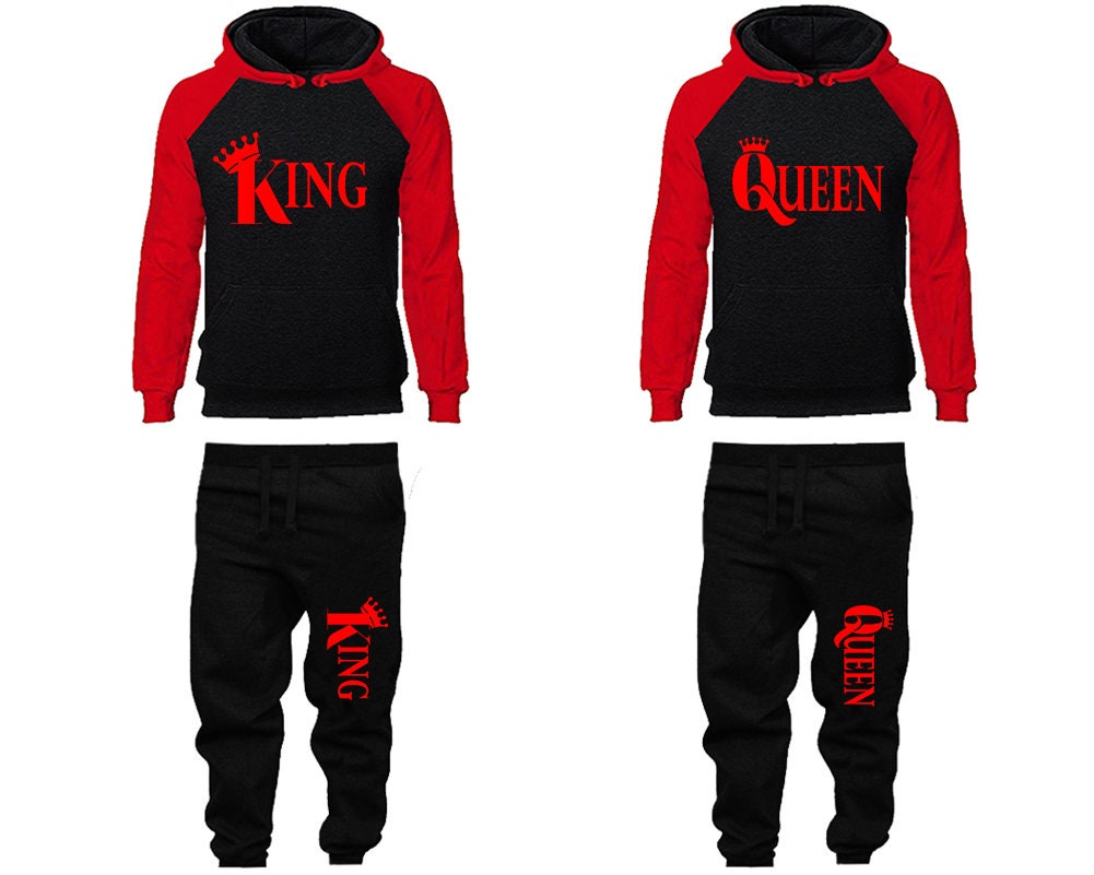 Crown King Queen matching tracksuit jogger Hoodie red designs Women Joggers Men Joggers King Queen Hoodies Matching 4 items Sold Separately