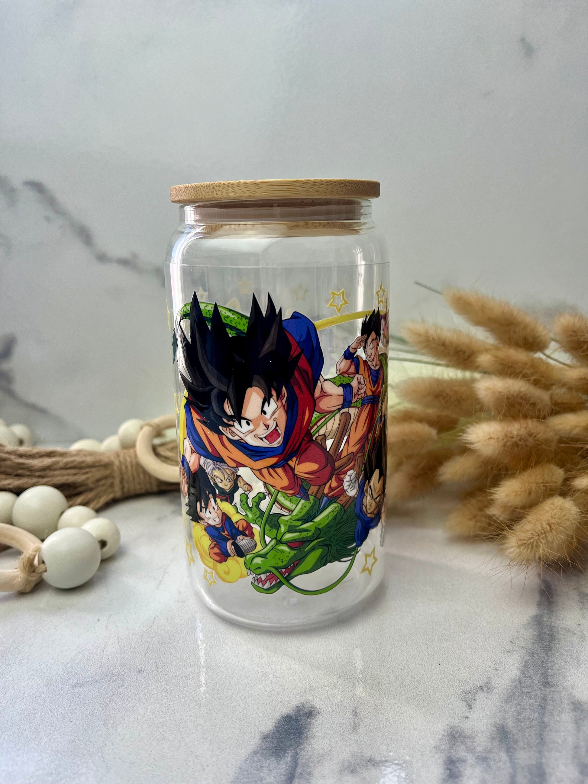 Dragon Anime Glass Cup With Lid And Straw, Cute Glass Tumbler Iced Coffee Cup, Gift for her, Tumbler hot summer, gift for birthday
