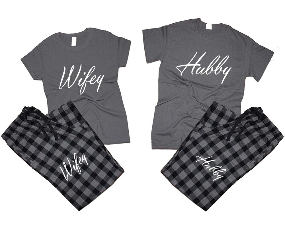 Gift for her Gift for him t shirt pants Hubby Wifey Couple flannel sets pajamas woman man Couple outfits gift 4 items sold separately