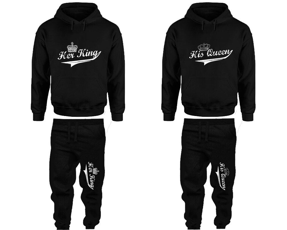 Her King His Queen Hoodie Jogger pants Christmas Clothing, Women Joggers Men Joggers King Queen Hoodies Matching 4 items Sold Separately