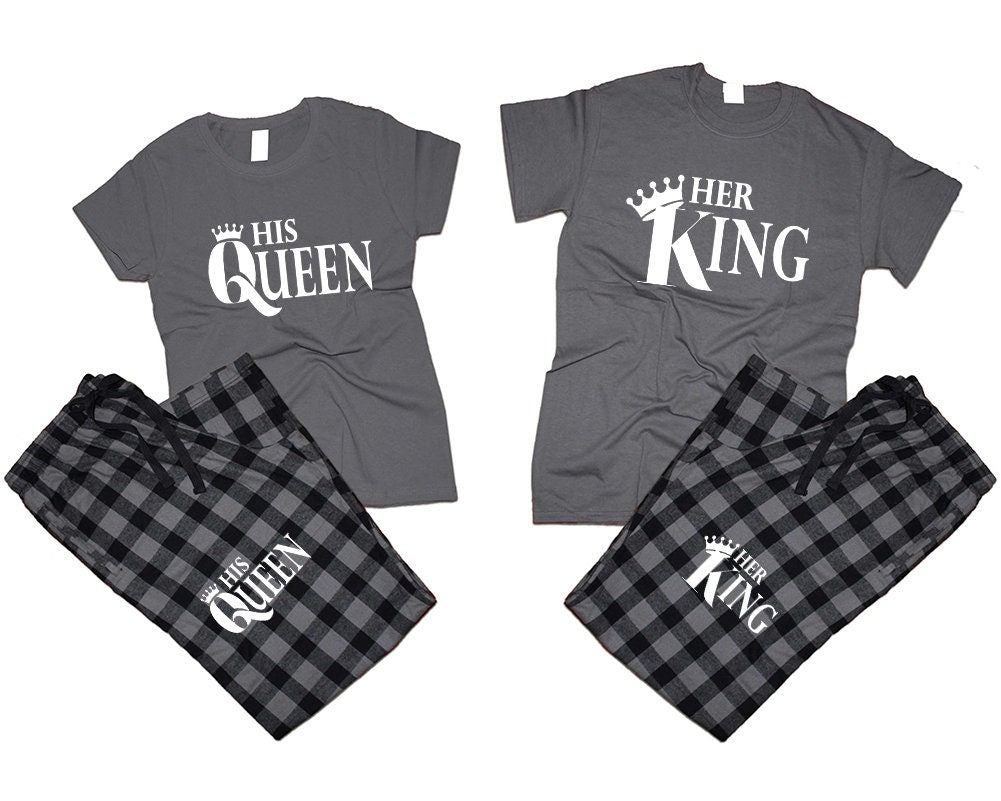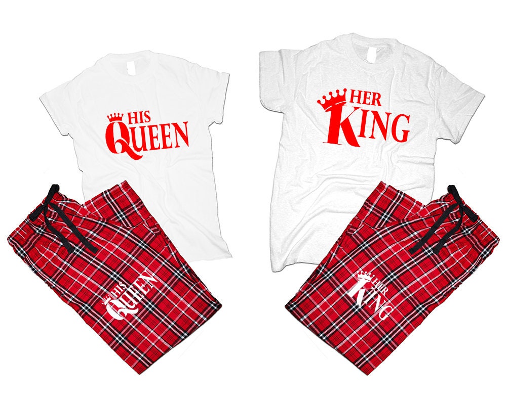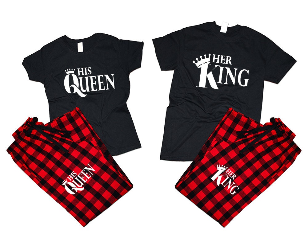 Her King His Queen matching pants shirts flannel sets matching t shirts pants woman man Couple outfits gift 4 items sold separately