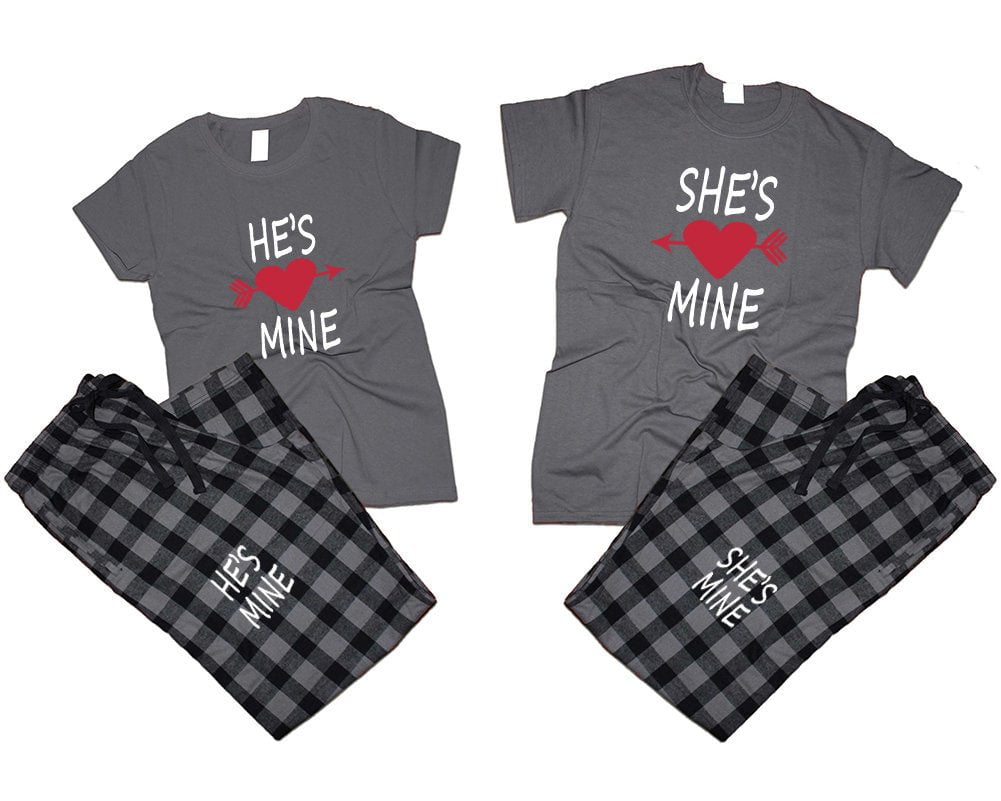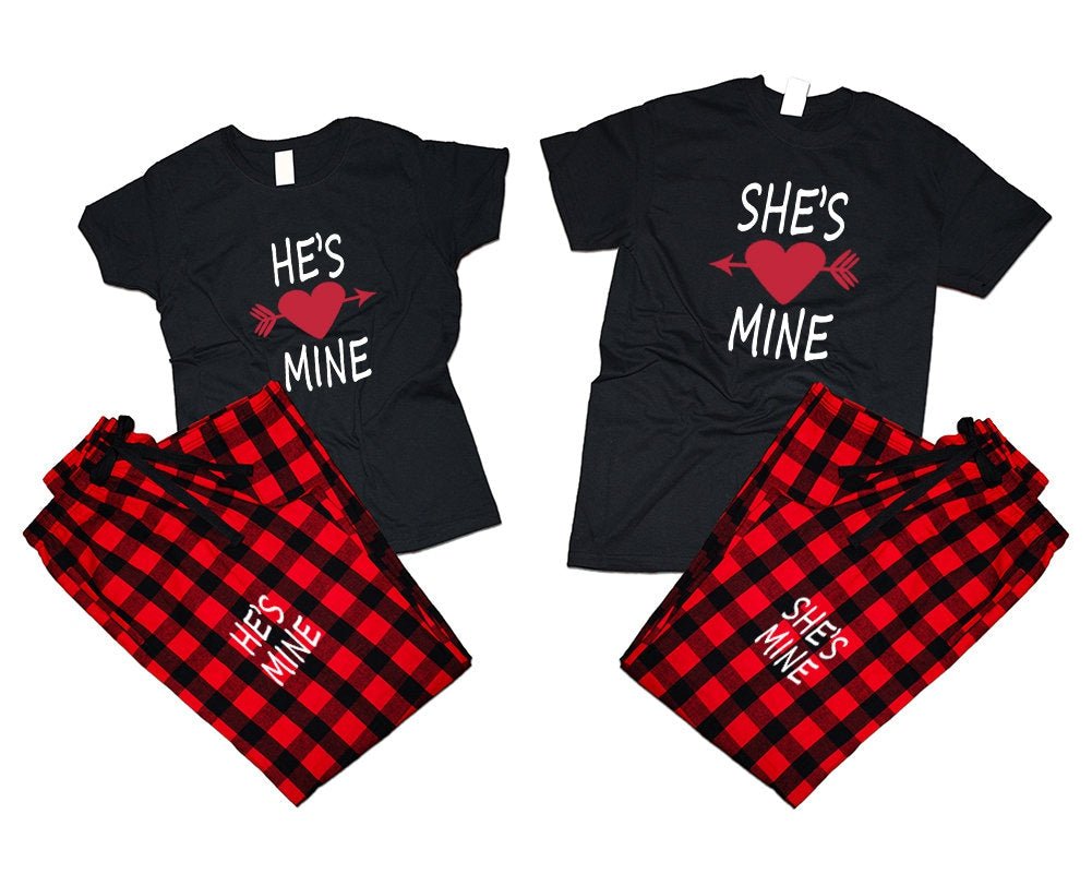 He's mine She's mine couple shirts pajamas flannel pants matching couple outfits Christmas gift wedding anniversary 4 items sold separately