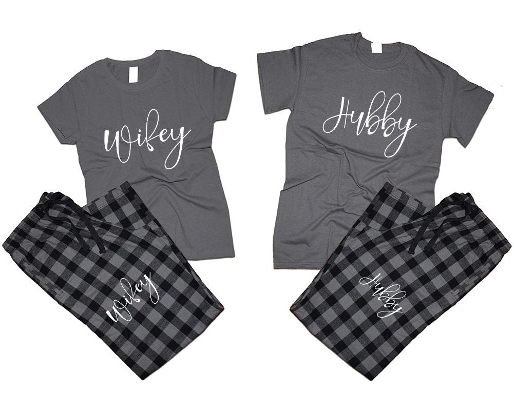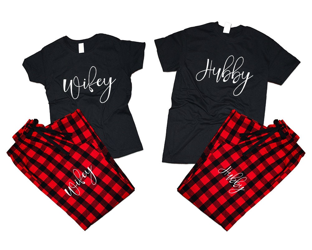 hubby wifey Couple t shirts with matching pants flannel sets pajamas sets woman man Couple outfits gift 4 items sold separately
