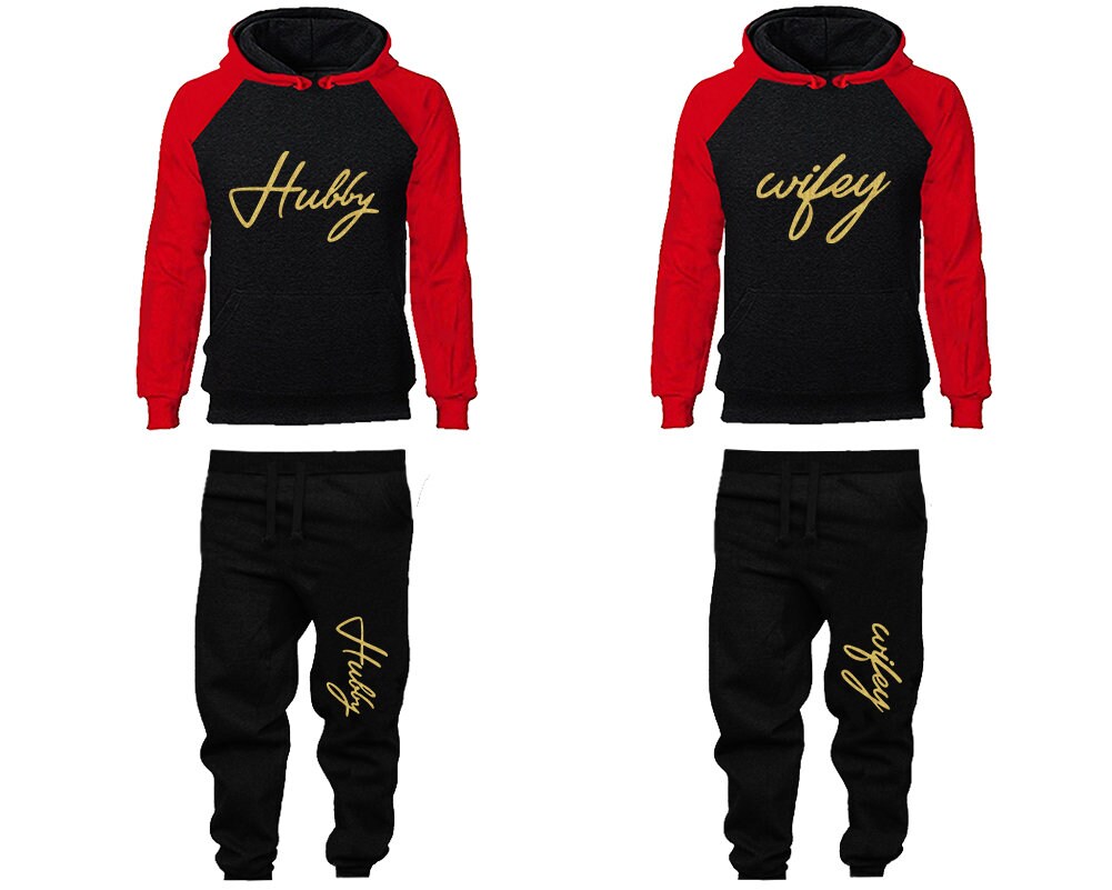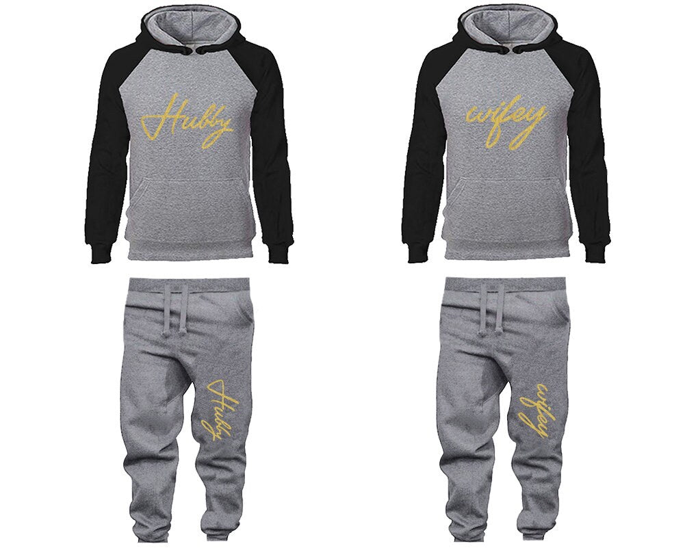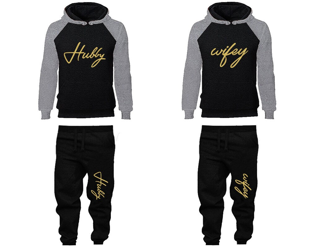 Hubby Wifey Hoodie Jogger Pants, Sweatsuits for couples, matching tracksuits, gold glitter 4 items Sold Separately