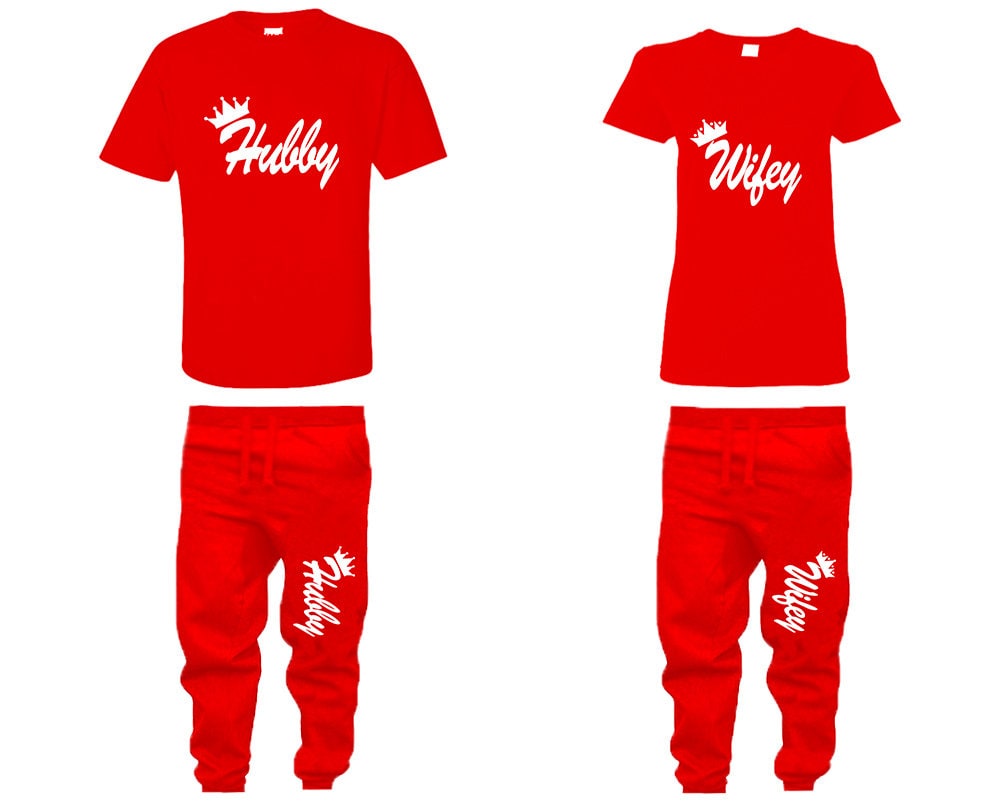 Hubby Wifey Jogger pants shirts matching outfit, christmas gift 4 items sold separately