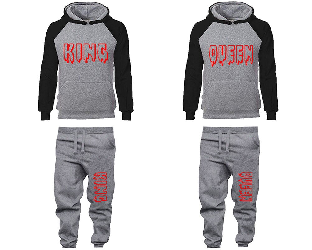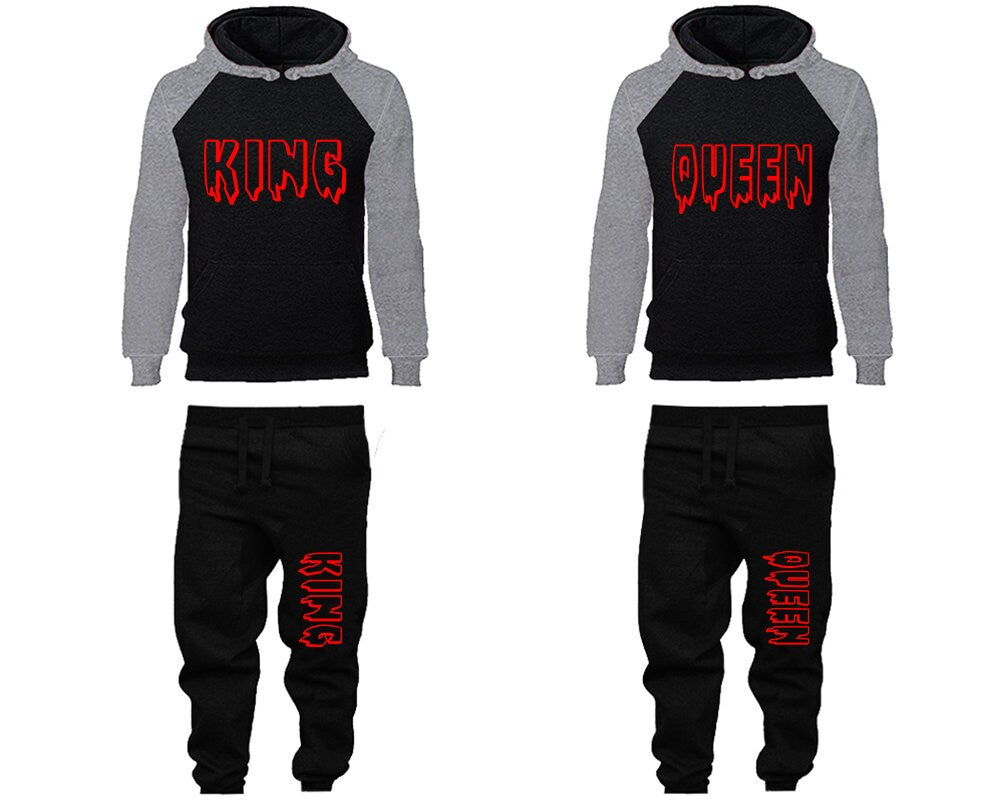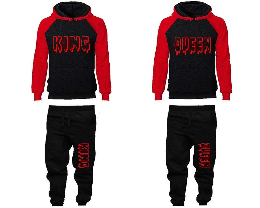 Jogger pants hoodie king queen tracksuit for couples red designs King Queen Hoodies Matching 4 items Sold Separately