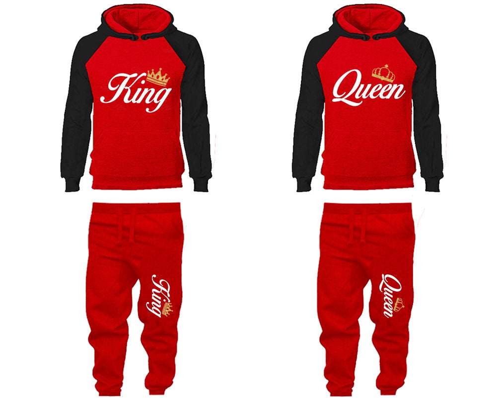 King Queen Hoodie Jogger pants gold glitter crown Clothing, Women Joggers Men Joggers King Queen Hoodies Matching 4 items Sold Separately