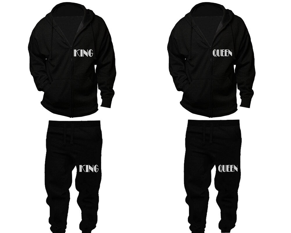 King Queen matching couple Zip-up Hoodie Jogger pants Women Men Joggers full zip Hoodies Matching 4 items Sold Separately