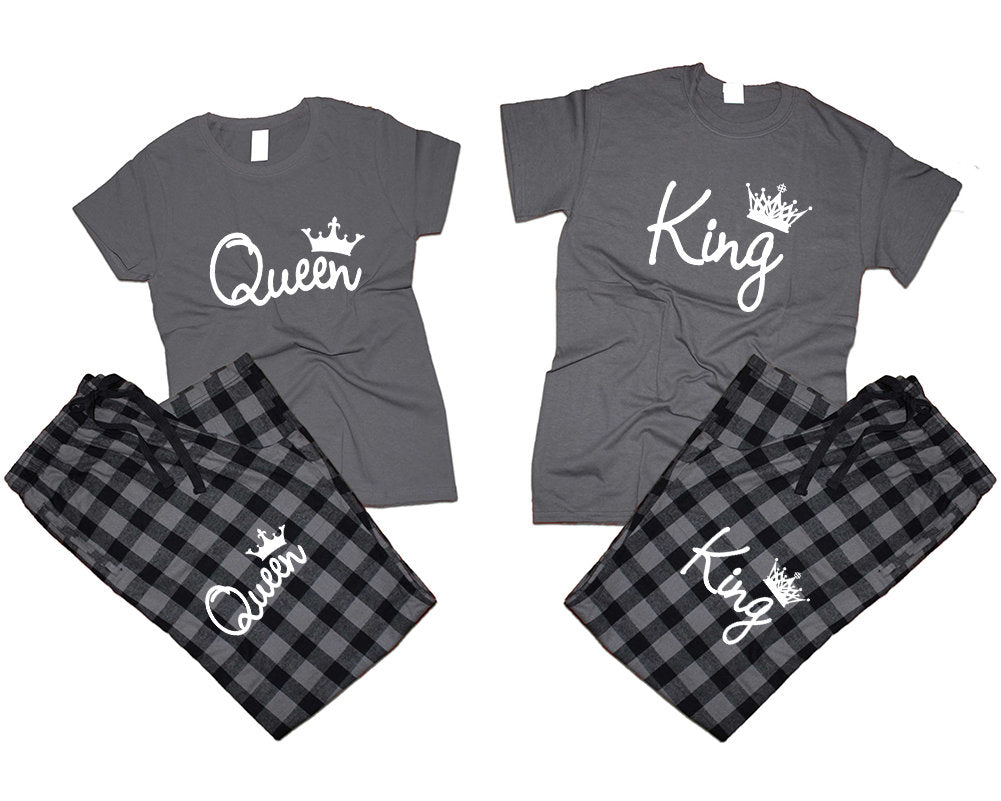 King queen matching t shirts flannel pants for Couples pajamas woman man Couple outfits gift 4 items sold separately