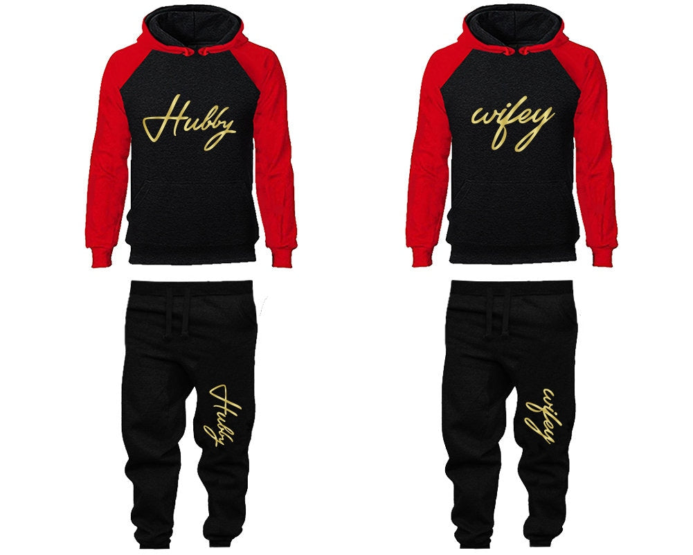 Matching Hubby Wifey Hoodie Jogger Pants, Sweatsuits for couples, matching tracksuits, gold foil 4 items Sold Separately