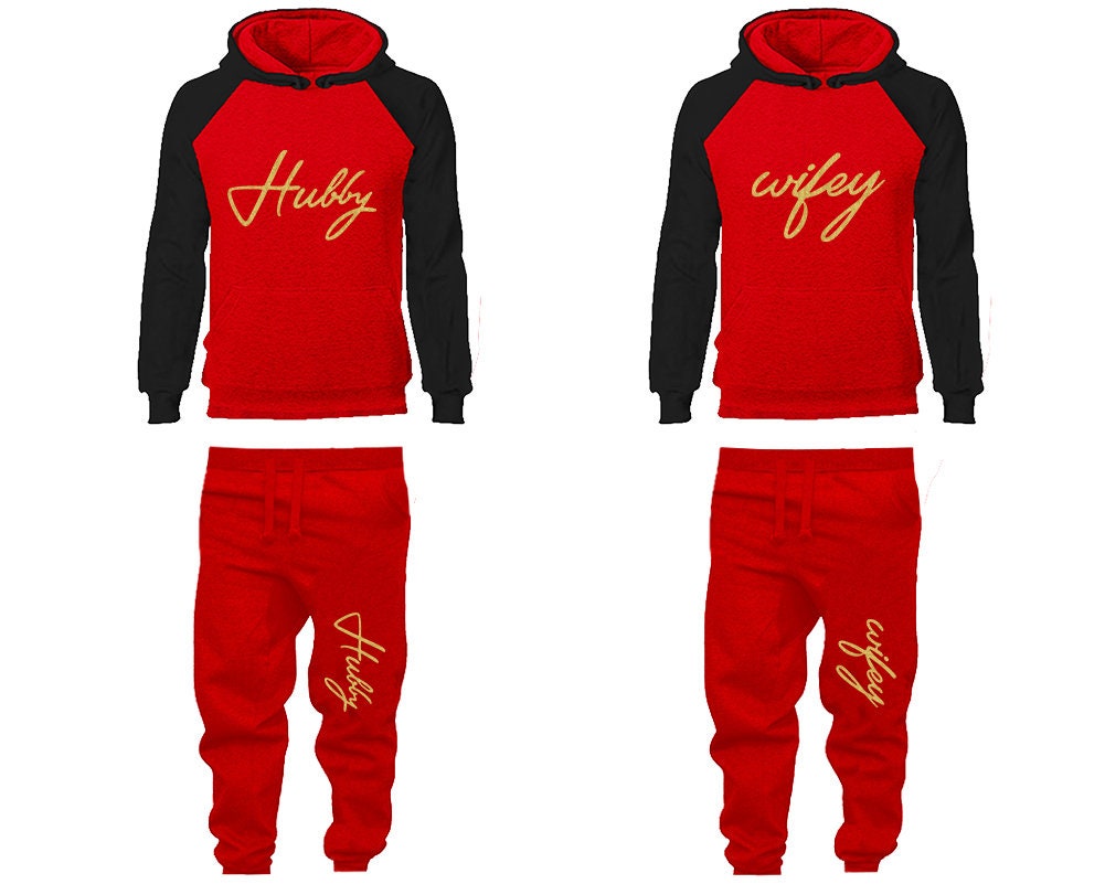 Matching Hubby Wifey Hoodie Jogger Pants, Sweatsuits for couples, matching tracksuits, gold glitter 4 items Sold Separately