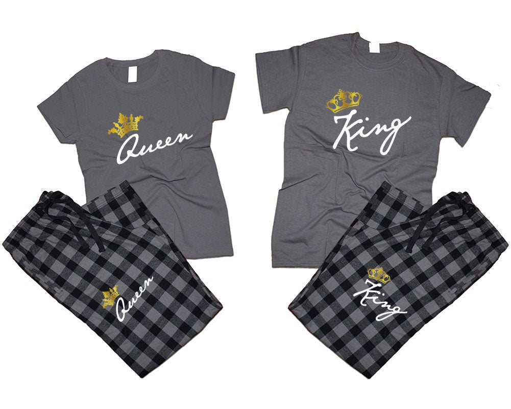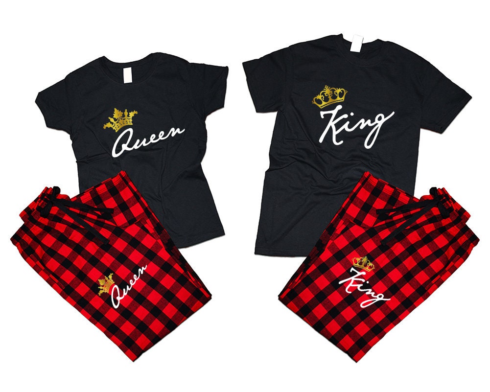 Pajamas King Queen gold foil Couple matching outfits flannel pants Christmas gift wedding anniversary vacation 4 items sold separately