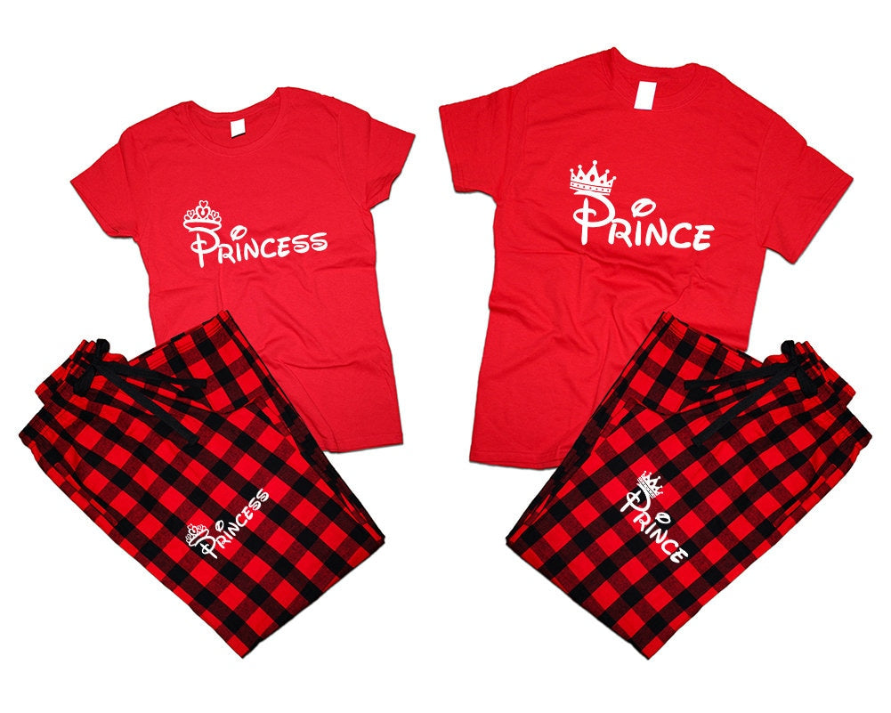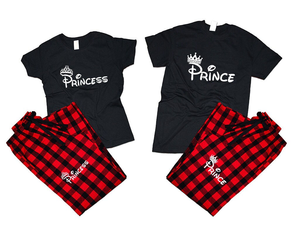 Princess Prince matching pants t shirts for couples pajamas flannel Christmas gift wedding anniversary vacation 4 items sold separately