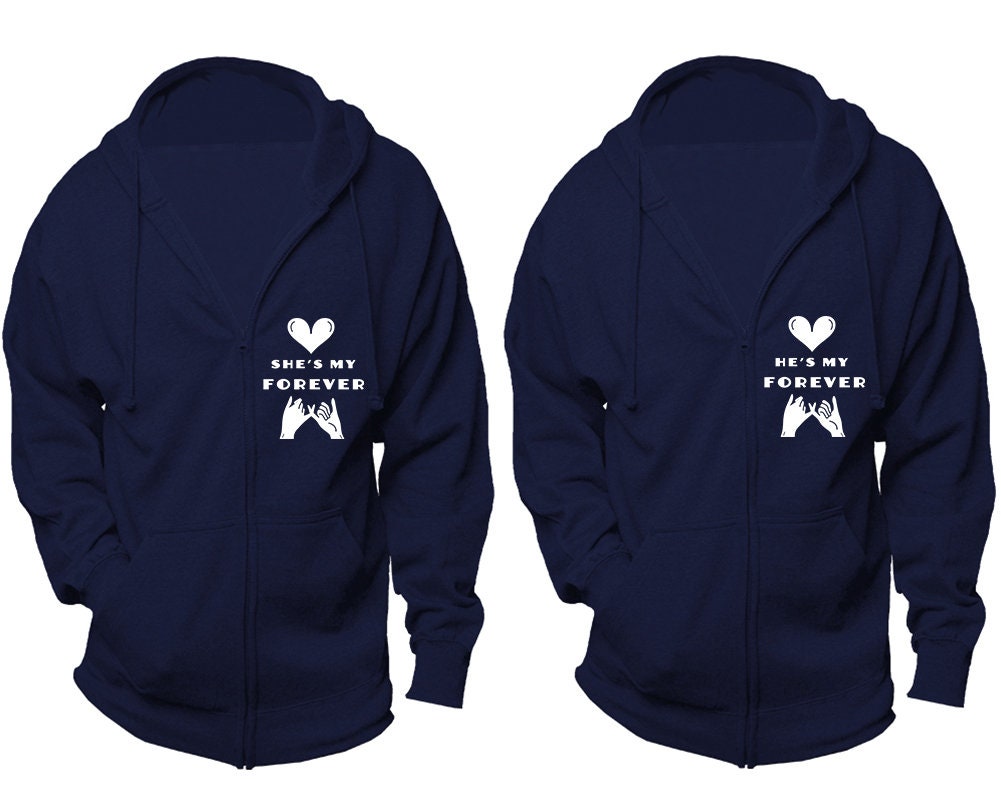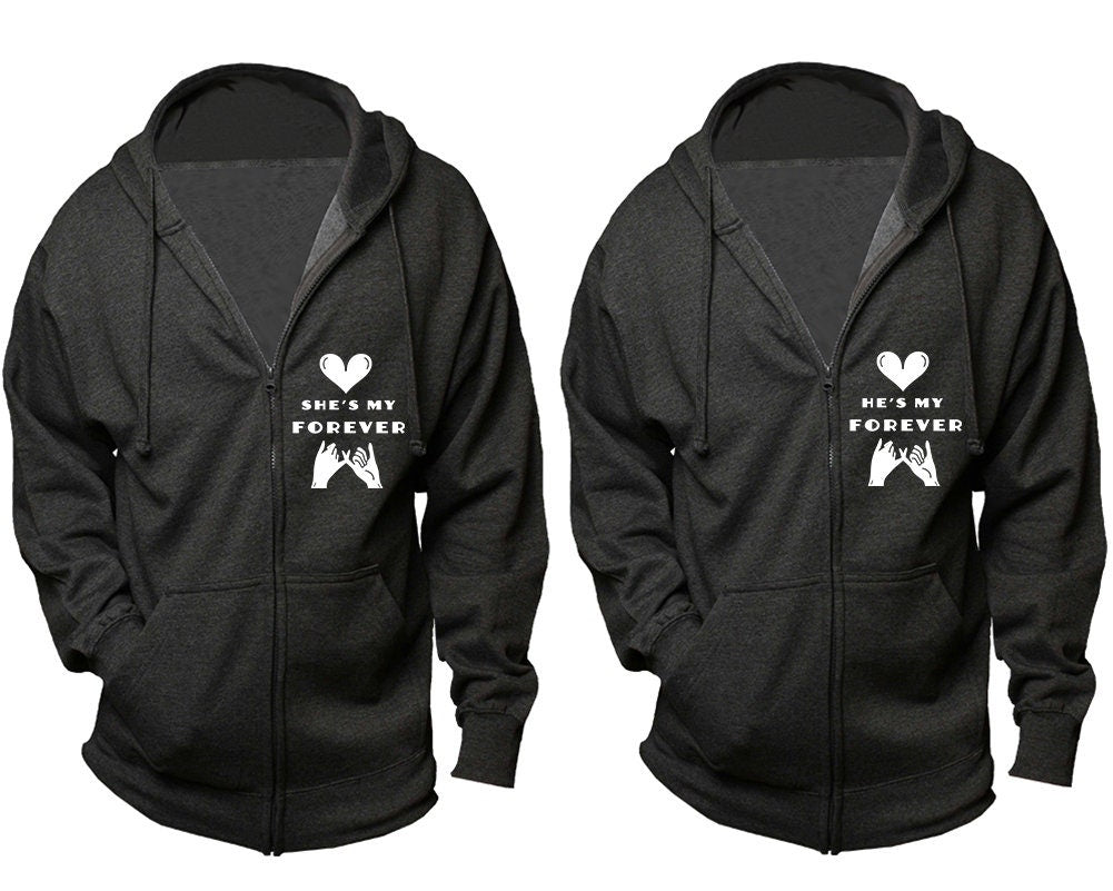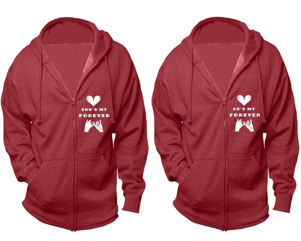 She's my forever, He's my forever sweaters, couple zip up hoodies, bride groom married outfits, engaged photo outfits, sold separately