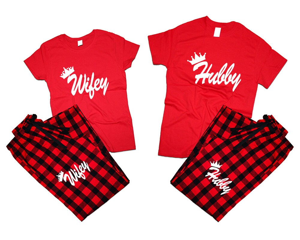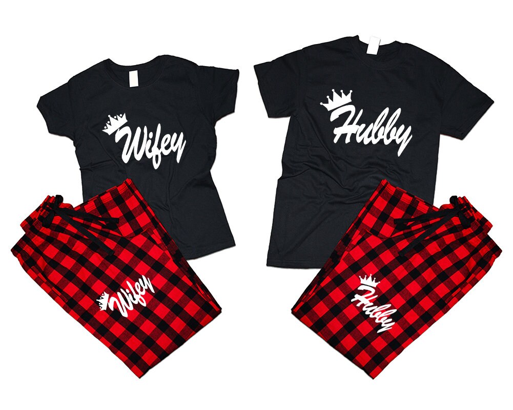 t shirt pants crown Hubby Wifey Couple flannel sets pajamas King queen woman man Couple outfits gift 4 items sold separately