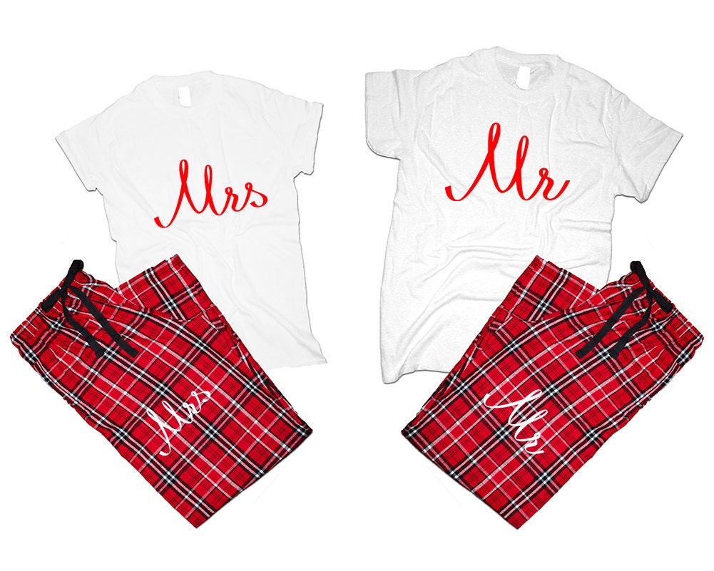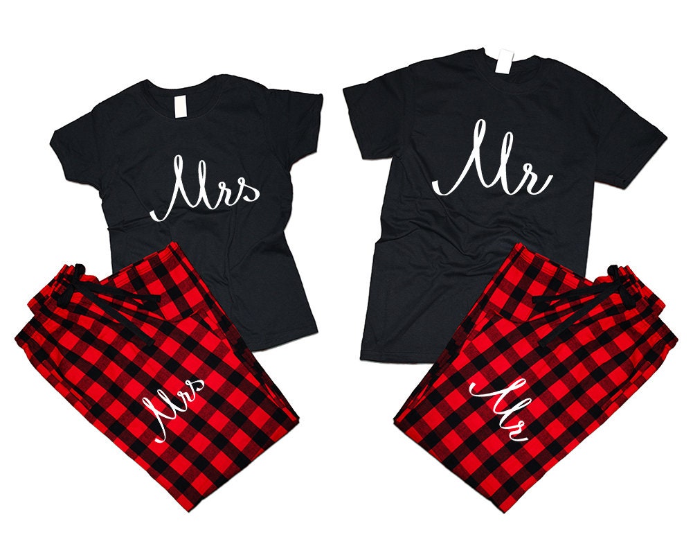 T shirts Mrs Mr Wedding gift pajamas flannel pants outfits Christmas gift wedding anniversary vacation gift for her 4 items sold separately