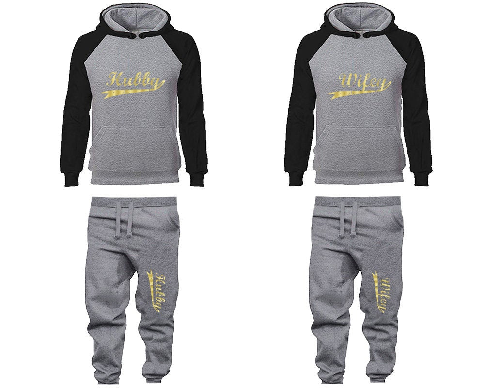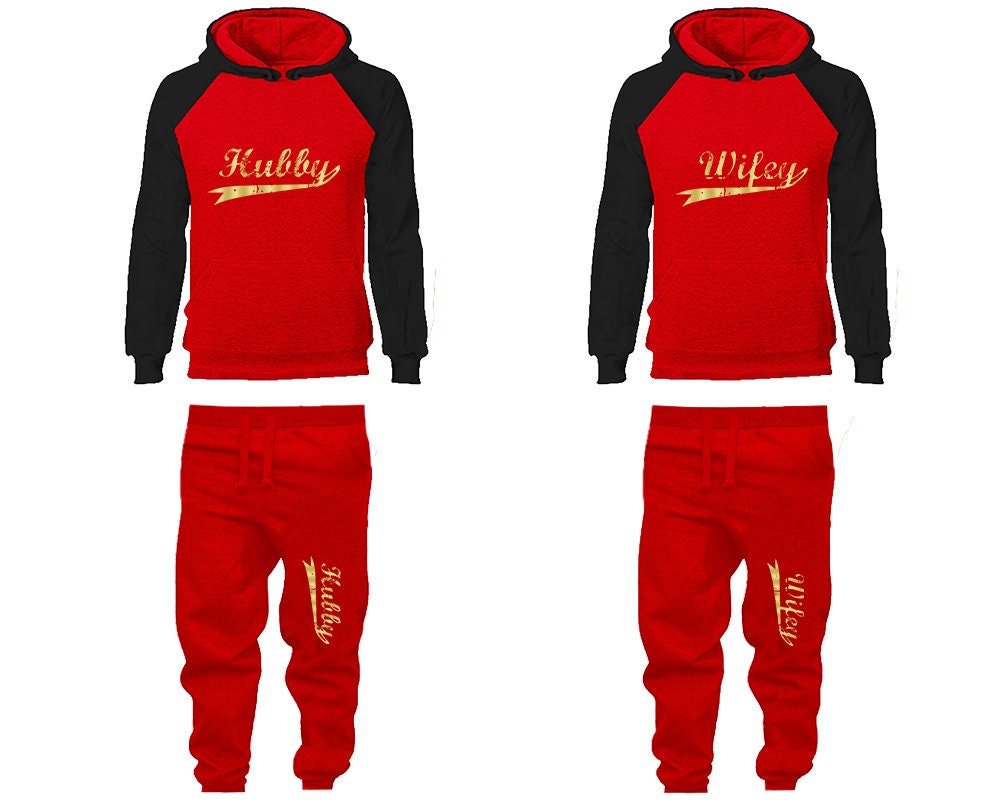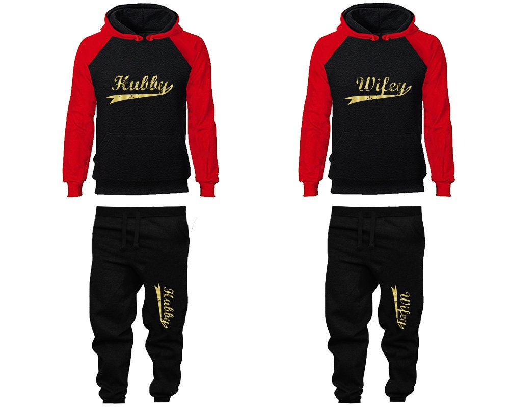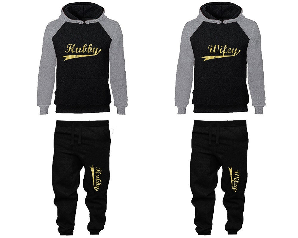 Tracksuit Hubby Wifey Hoodie Jogger Pants, Sweatsuits for couples, matching tracksuits, gold foil 4 items Sold Separately