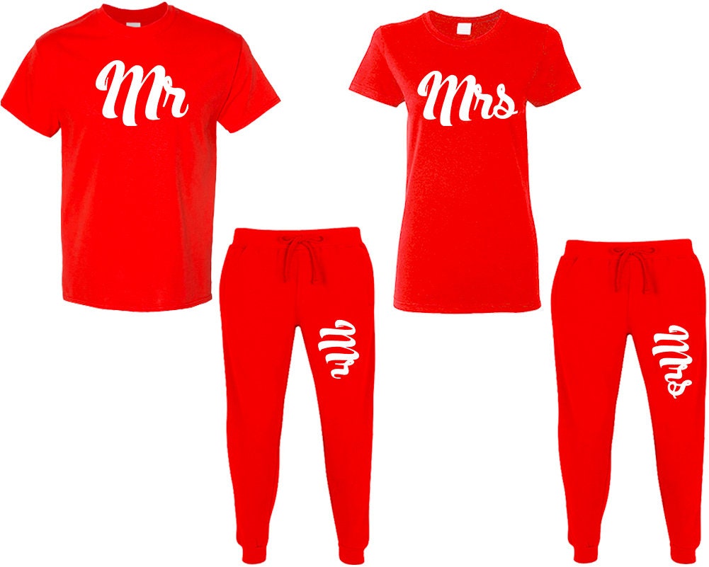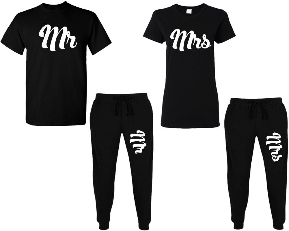 Tracksuit Mr Mrs t shirt sweatpants matching outfits, jogger pants Christmas gift outfits tracksuit for couples 4 items sold separately