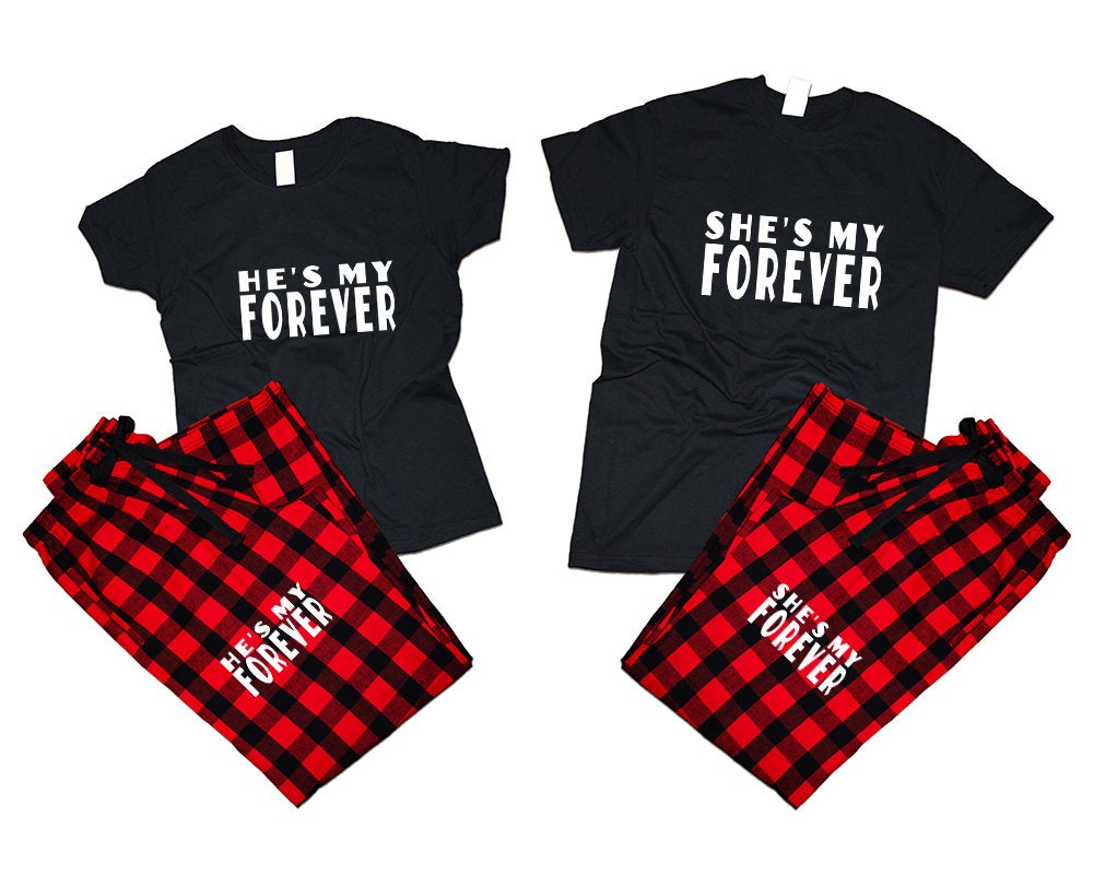 Valentine Couple T shirts pants He's my forever She's my forever pajamas flannel couple outfits Christmas gift 4 items sold separately