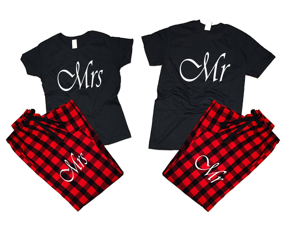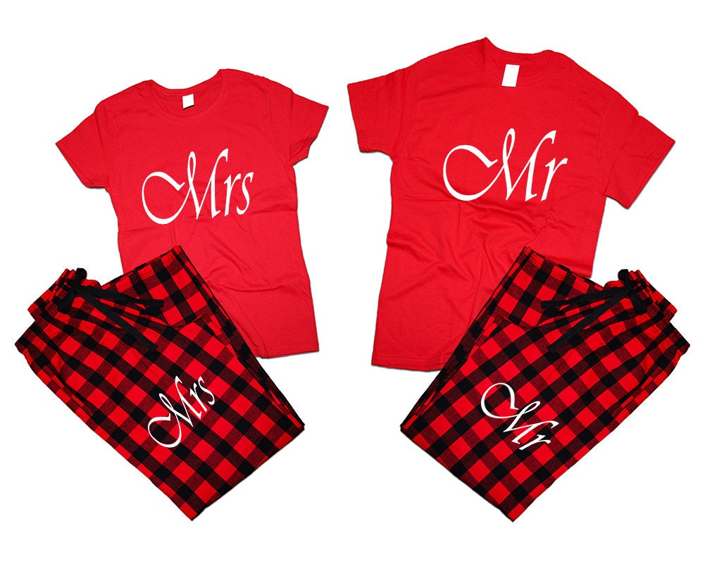 Wedding gift Mr Mrs T shirts pajamas flannel pants outfits Christmas gift wedding anniversary vacation gift for her 4 items sold separately