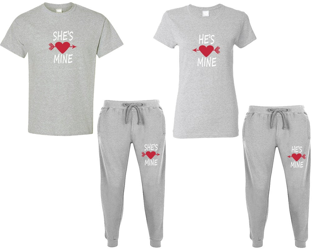 Woman clothing Man clothing Couple sweatpants t shirts tracksuits She's mine He's mine sets engagement gift wedding 4 items sold separately